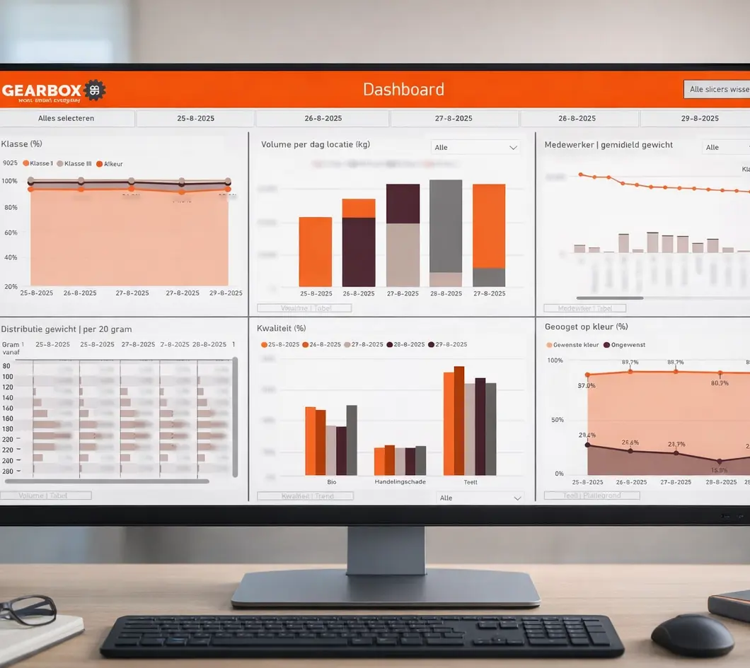 Modulaire software met uitgebreide operator dashboards en management rapportages met analyses van oogst tot verpakken